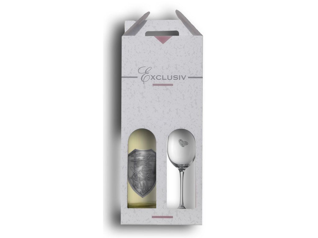 Darčekový set obsahuje biele polosuché víno s kovovou etiketou s venovaním Všetko najlepšie mladomanželom + 1 ks pohár na víno, darčekové balenie exlusive.
