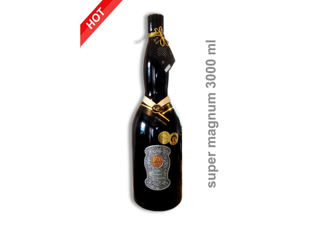 Ozdobné darčekové víno s objemom 3000 ml - Frankovka modrá. Fľaška obsahuje kovovú viď obrázok.