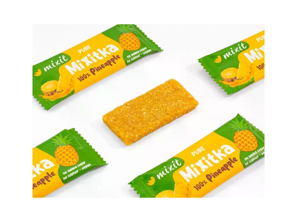 Zloženie: Ovocná tyčinka, sušený ananás 100 %