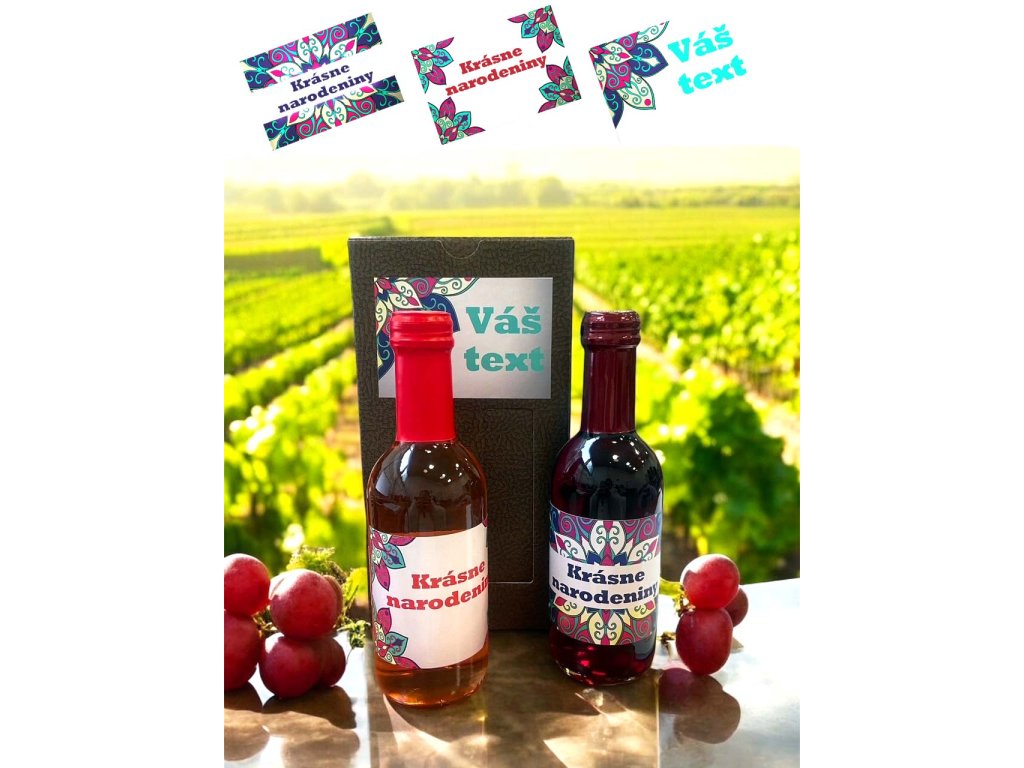 Darčekový balíček - ovocné vína - mandala etiketa k narodeninám - luxusná darčeková krabička