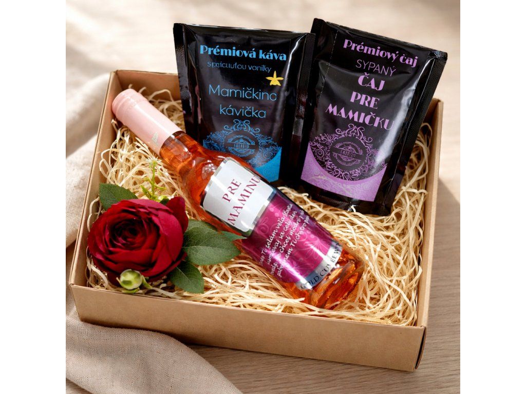 Darčekový balíček pre mamu: Prémiová káva a čaj + jahodové víno