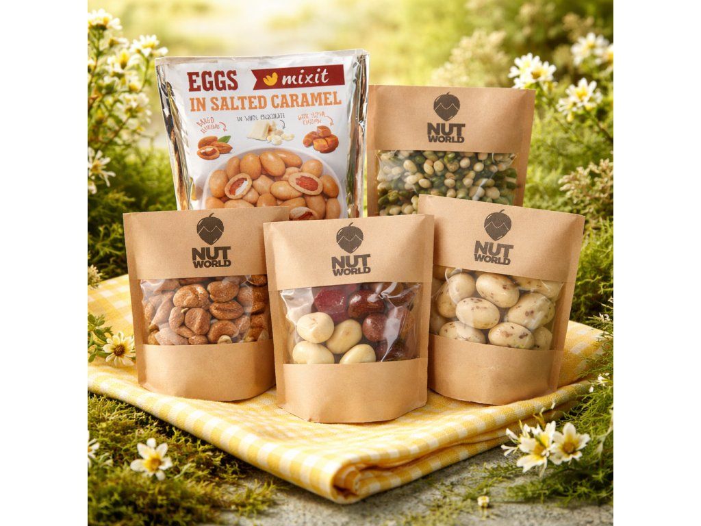 Lahodná zmes orechov, ktorá kombinuje sladkú a slanú chuť. Krásne chrumkavé a okamžite si ich zamilujete.