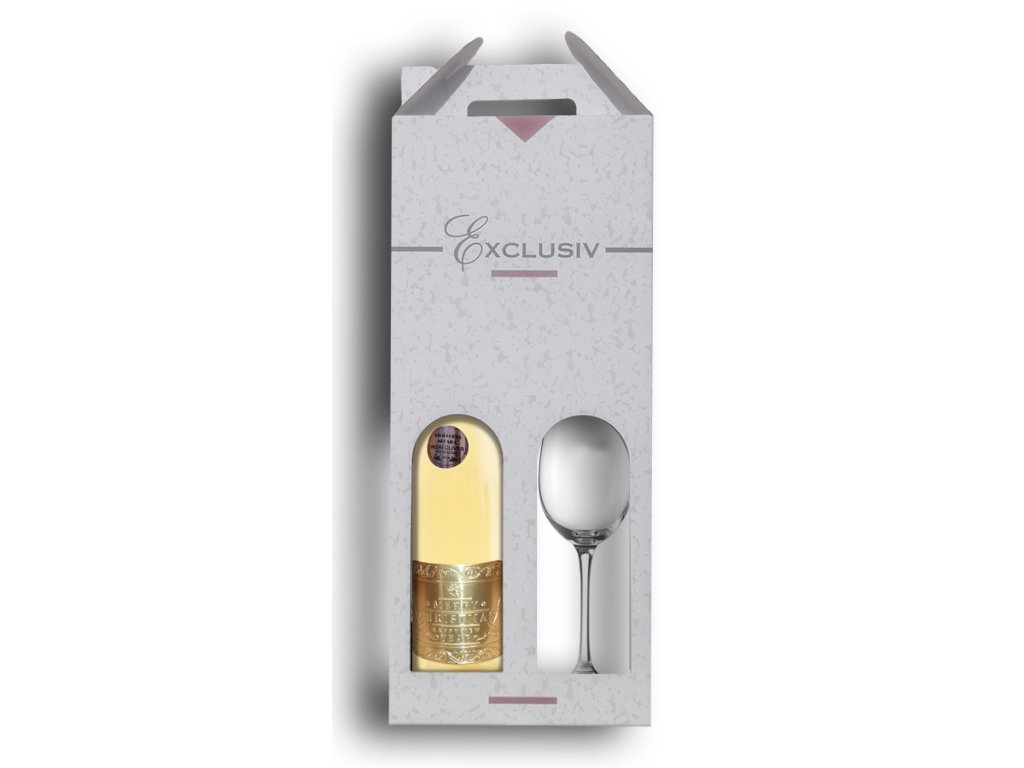 Darčekový set obsahuje biele polosuché víno s kovovou etiketou pozlátenou 24 karátovým zlatom s vianočným venovaním Veselé Vianoce a Šťastný Nový Rok + 1 ks poháre na víno, darčekové balenie exlusive.