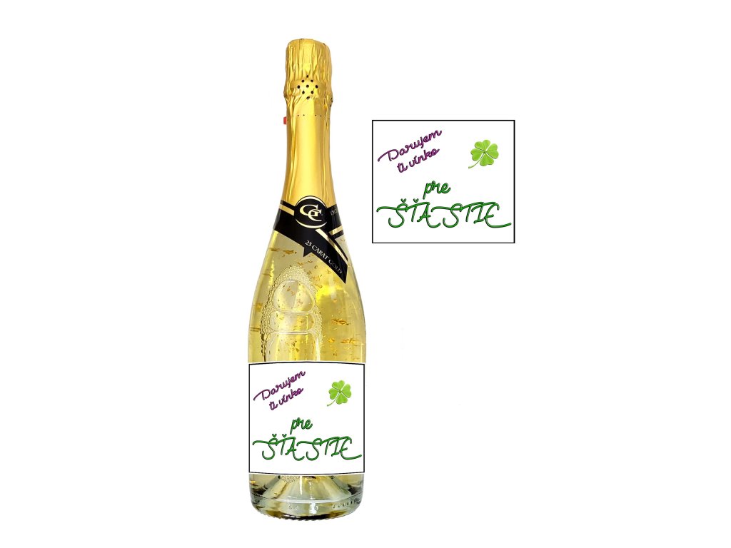 Šumivé so zlatom s etiketou „Darujem ti vínko pre šťastie“ je darček, ktorý rozdáva úsmevy už pri prvom pohľade.