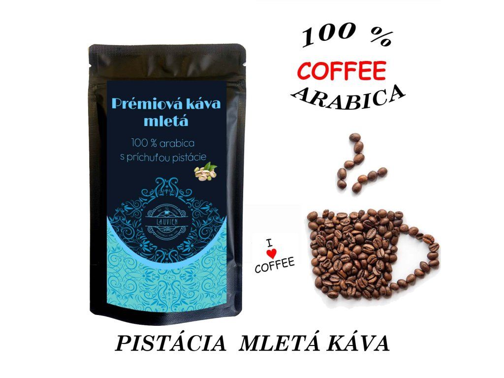 Zloženie: plantážna káva 100% Arabica, aróma pistácia (2%)