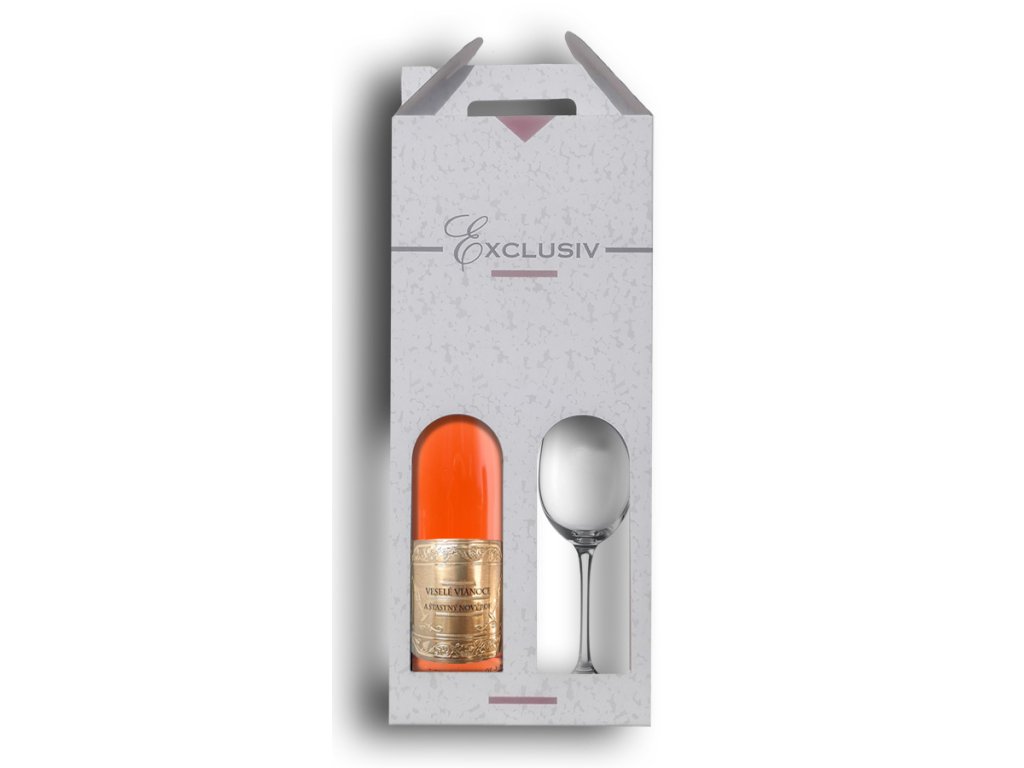 Darčekový vinný set obsahuje ružové víno s kovovou etiketou pozlátenou 24 karátovým zlatom s vianočným venovaním VESELÉ VIANOCE A ŠŤASTNÝ NOVÝ ROK + 1 ks pohár na víno, darčekové balenie exlusive.
