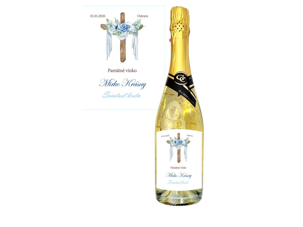 Víno na krst - chlapec - šumivé so zlatom s osobným venovaním